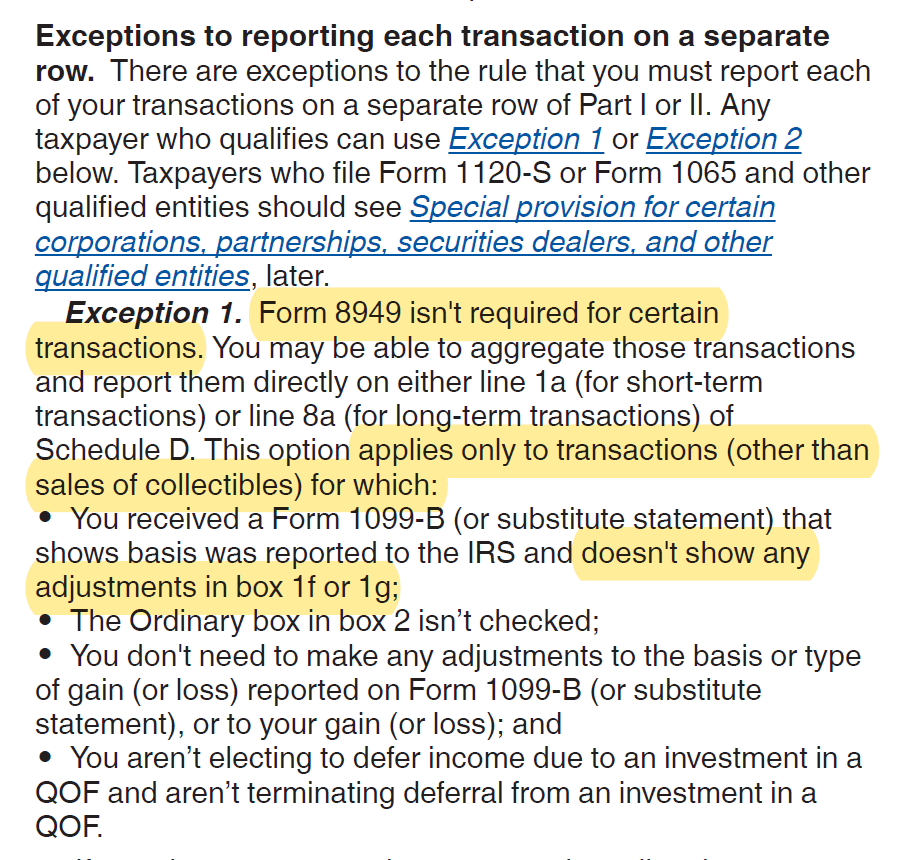 Form 8949 Instructions state you do not have to file a Form 8949 if: